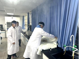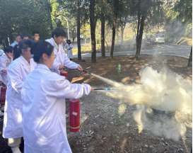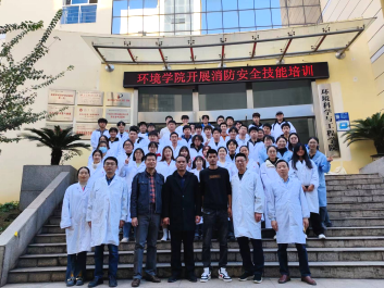 此次演练包含酸碱灼伤处理、突发火情紧急疏散、灭火器操作三项内容。一是在实验教师的指导下,由学生代表演示强酸泼溅的应急处理方法;二是模拟由于实验室线路老化突发火灾,由实验老师引导学生有序疏散到指定地点并指导学生用灭火毯扑灭火情;三是由校保卫处专业人员讲解灭火器的操作方法和注意事项,并模拟小型火情,组织学生使用灭火器进行灭火演练。