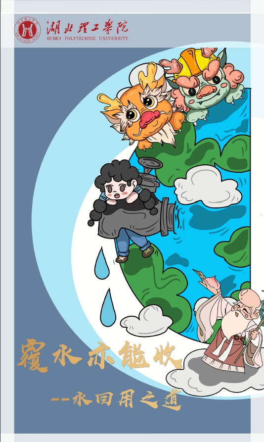 该作品采用漫画形式、以生动有趣的神话人物故事作为引言,通俗易懂地介绍了国内外水回用的发展历程、我国市政水回收和企业污水的处理方法以及水回用的场景等知识。作品由环境工程专业陈碧云同学联合艺术学院学生创作,曾获第四届全国城市水环境科普创意大赛特等奖。
