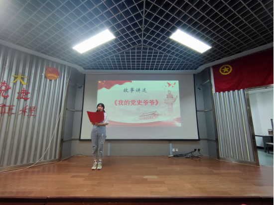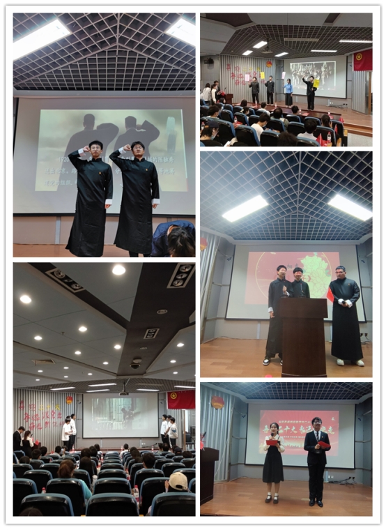 晚上七点,主题团会活动在主持人致辞和全体成员重温入党誓词、齐唱团歌中拉开序幕;出场节目对唱《我们的明天》和相声《三大才子》在同学们精彩的表演下,引发了现场持续不断的掌声浪潮;震撼人心的配音《我愿乘长风破万里浪》也向同学们展现了我党在历史发展中乘风破浪、一往无前的骁勇。在随后的互动《数字炸弹》中,同学们积极参与,现场气氛活跃。话剧《敬告青年》,让在场观众瞬间穿越回那个热血沸腾的觉醒年代,再次感受到革命先辈的红色革命血脉。节目《我的党史爷爷》,在讲述者王明林孙女王昕的生动讲述下,让团员们感受到了党政策的温暖,也更加坚定了团员们奉献党和奉献祖国的决心。主题党日最后在节目手势舞《星辰大海》下落下了帷幕。